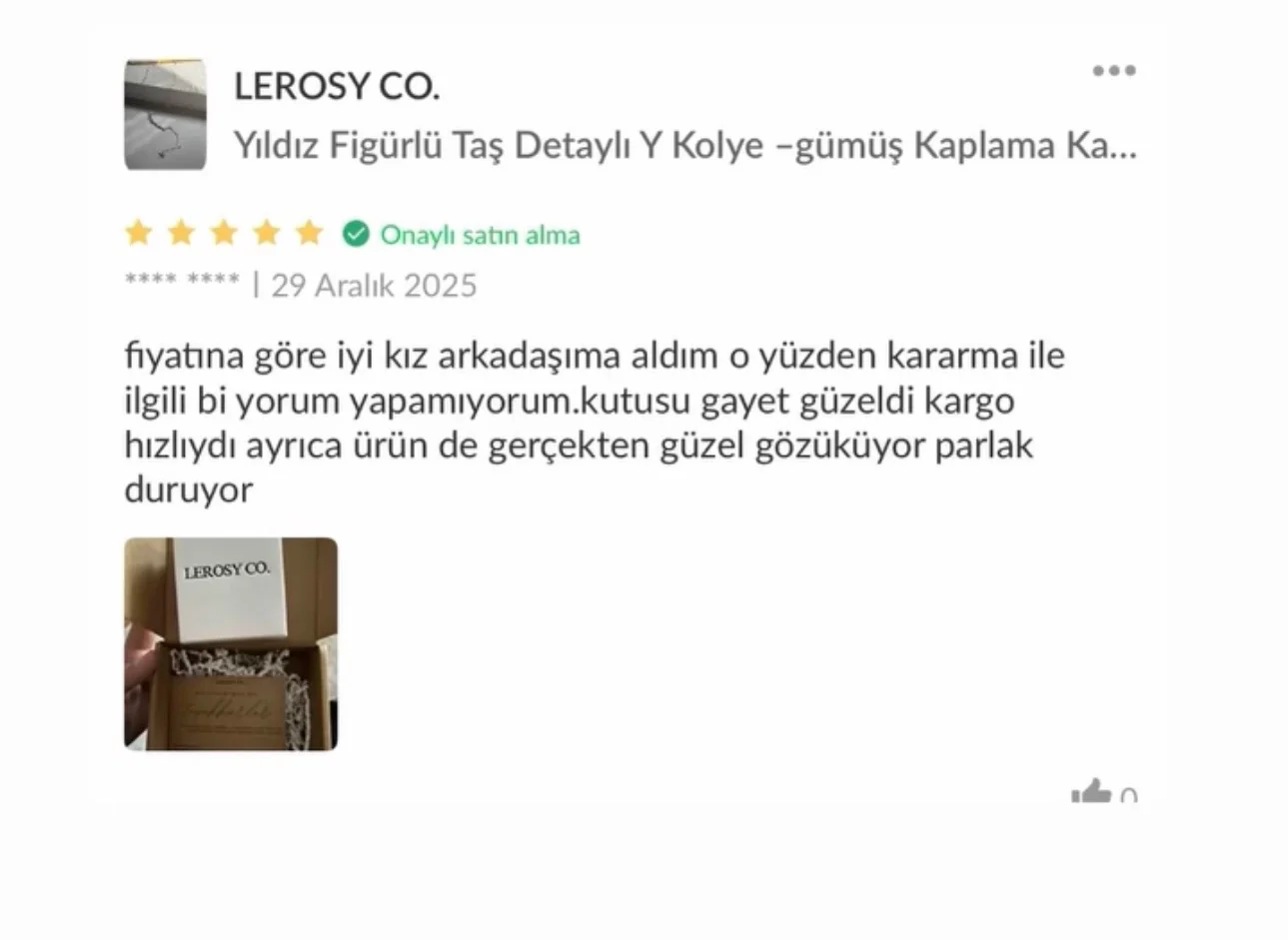 Her Lerosy Co ürünü, özel koruma katmanı ile üretilir; böylece takılarınız yıllarca ilk günkü ışıltısını korur.